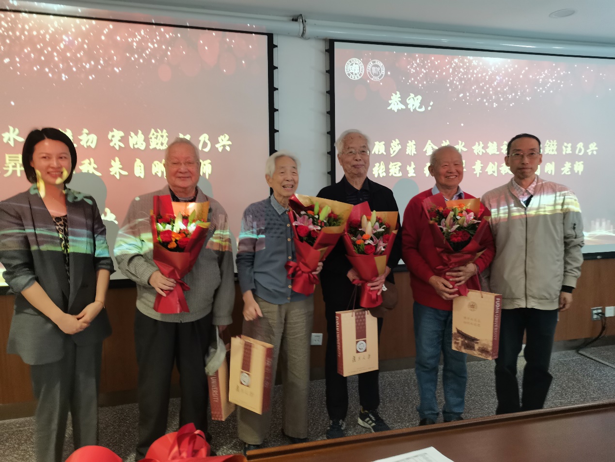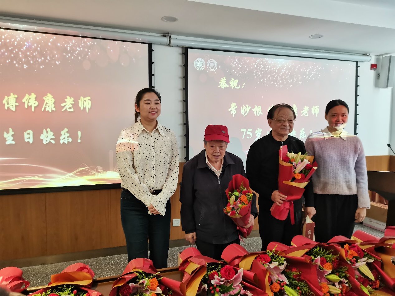 集体祝寿环节温馨满溢。ag真人 现有离退休教师140余位,今年 “逢五逢十” 的寿星共32位。在全场热烈掌声中,马蔚纯、秦枫、王文宁三位系领导为寿星代表送上鲜花与礼品,并送上了美好祝愿。寿星代表郁祖湛老师、朱自刚老师动情发言,感谢ag真人 的精心筹备,并祝愿老同志们身体健康、阖家幸福。