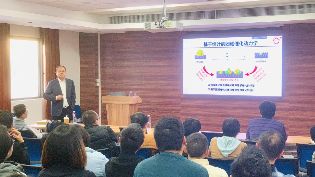 报告内容深入浅出、逻辑严谨,现场学术氛围热烈。在交流讨论环节,报告人与在场师生就 MSI 的物理本质、AI模型的可解释性、极端条件下催化剂稳定性调控等问题展开了深入交流,取得了良好反响。